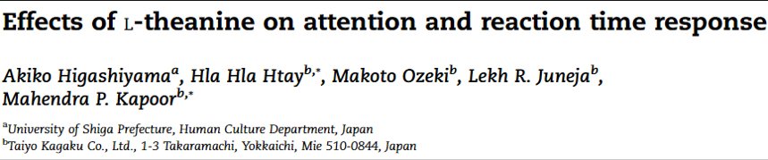 แอล-ธีอะนีน คือ กรดอะมิโนที่เกี่ยวข้องกับระบบประสาท มีผลเรื่องการสร้างความผ่อนคลาย มีกลไกการทำงานในสมองด้วยการยับยั้งการจับสาระสำคัญต่อกลูตาเมทรีเซพเตอร์ในสมอง เมื่อวัดสารสำคัญในการสื่อประสาทในเซลล์สมองพบว่า แอล-ธีอะนีนสามารถเพิ่มสารซีโรโทนิน (Serotonin) โดปามีน (Dopamine) และกาบา (GABA) เพิ่มการเรียนรู้ และความจำ