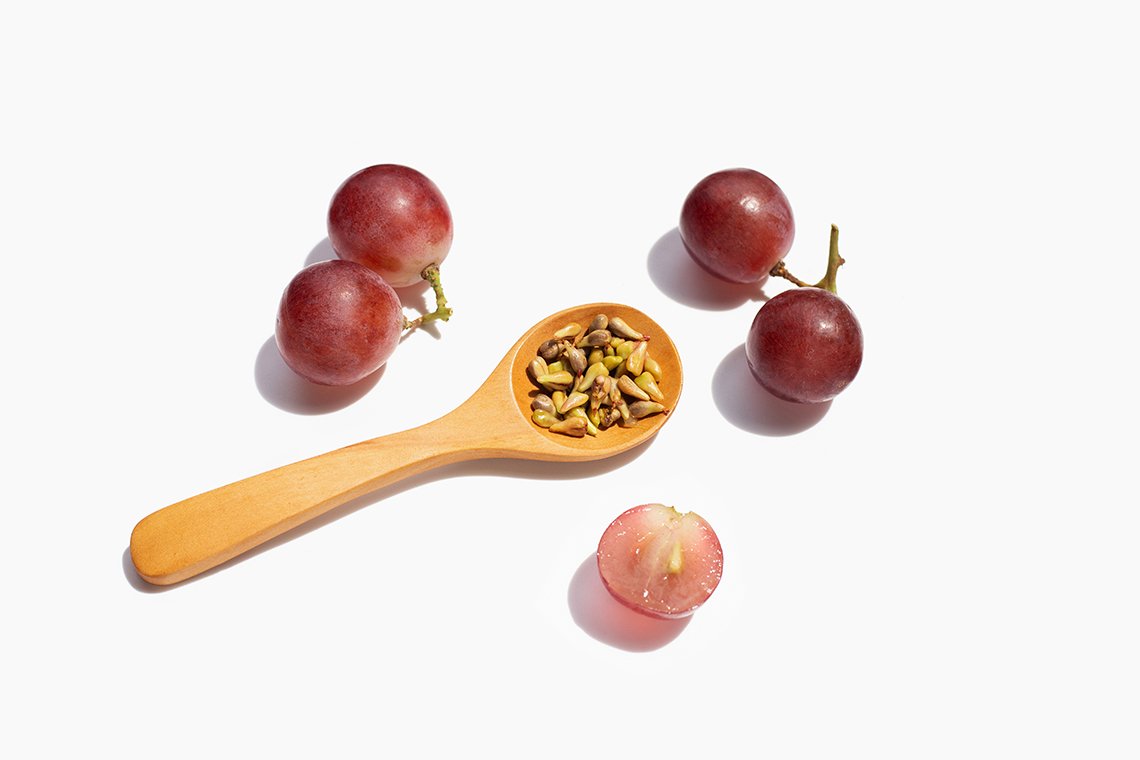 สารสกัดจากเมล็ดองุ่น (Grape Seed Extract) มีชื่อวิทยาศาสตร์ว่า Vitis vinifera L. สามารถนำมาใช้ประโยชน์ได้หลากหลายได้แก่ บริโภคสด ผลิตไวน์ ผลิตน้ำองุ่น เป็นผลิตภัณฑ์ต่างๆ และสารสกัดที่ได้จากเมล็ดองุ่น เป็นสารกลุ่มไบโอฟลาโวนอยด์ ชนิดที่เรียกว่า โปรแอนโธไซยานิดิน (Proanthocyanidin) เมื่อรวมตัวกันจะอยู่ในรูป “โอลิโกเมอริก โปรแอนโธไซยานิดิน” (Oligomeric Proanthocyanidins) หรือเรียกย่อๆว่า “OPC” OPC เป็นสารต้านอนุมูลอิสระที่มีอนุภาพสูงกว่าวิตามินซี 20 เท่า และสูงกว่าวิตามินอี 50 เท่า จึงได้รับขนานนามว่าเป็นสารต้านอนุมูลอิสระประสิทธิภาพสูง (Super antioxidant) สามารถละลายได้ทั้งในน้ำและน้ำมัน จึง สามารถแทรกซึมไปได้ทุกส่วนของเซลล์ร่างกาย