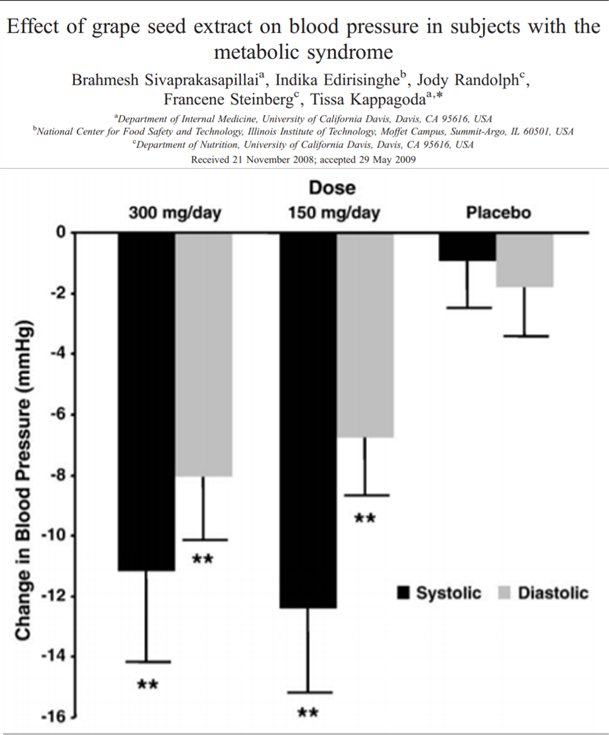 ด้วยคุณสมบัติที่สามารถละลายได้ในน้ำมันของ OPC จากสารสกัดเมล็ดองุ่นสามารถยับยั้งการเกาะตัวของคอเลสเตอรอลที่ ผนังหลอดเลือด เพิ่มความสามารถในการไหลเวียนโลหิตส่งผลให้ระดับความดันโลหิตดีขึ้น และส่งเสริมให้เส้นเลือดฝอยแข็งแรงไม่เปราะ หรือแตกหักง่าย ช่วยบรรเทาอาการเส้นเลือดขอดหรือโป่งพอง