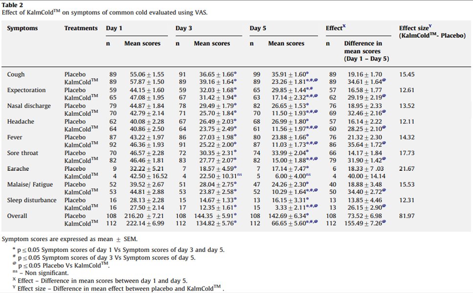 A randomized double blind placebo controlled clinical evaluation of extract of Andrographis paniculata (KalmColdTM)