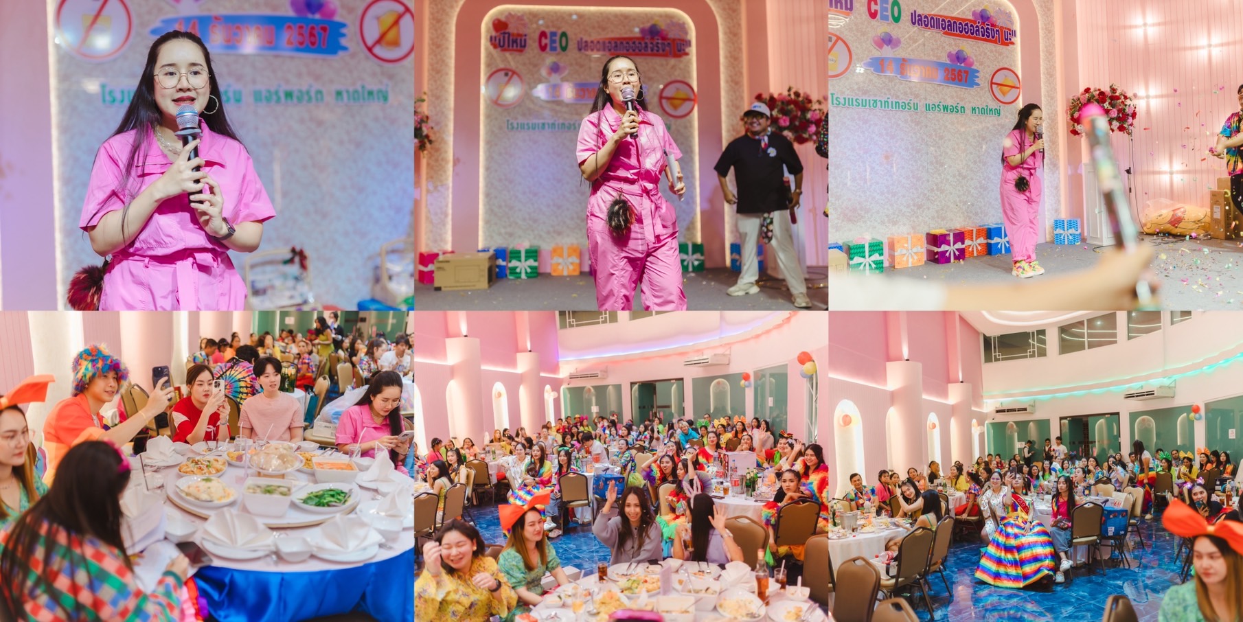 ธีมของงานในปีนี้เน้นสีสันสดใส ซึ่งพนักงานทุกท่านต้องแต่งตัวให้ครบ 7 สี เพื่อสร้างบรรยากาศที่เต็มไปด้วยความสนุกสนาน นอกจากนี้ ยังมีกิจกรรมที่หลากหลายและน่าตื่นเต้น ไม่ว่าจะเป็น การเล่มเกมส์ชิงรางวัล การจับฉลากของขวัญ การมอบรางวัลพิเศษให้แก่ผู้ที่มีผลงานโดดเด่น และการประกวด CEO STARS 2024 ที่จัดขึ้นเพื่อความสนุกสนาน