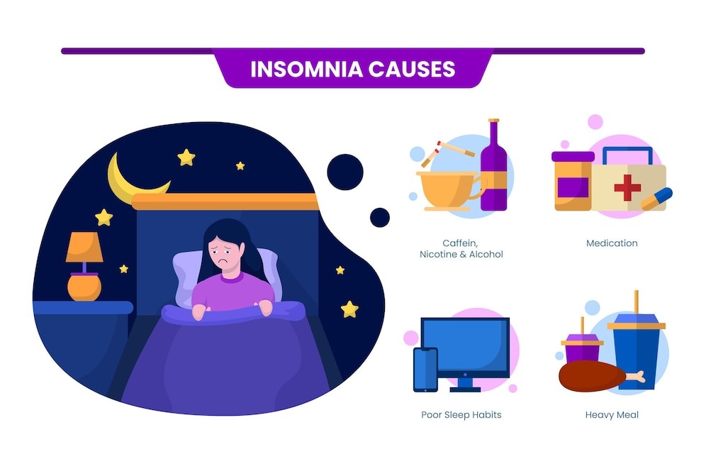 - พฤติกรรมการใช้ชีวิต – การดื่มคาเฟอีนในช่วงเย็น การใช้อุปกรณ์อิเล็กทรอนิกส์ก่อนนอน หรือการไม่มีตารางเวลาการนอนที่แน่นอน