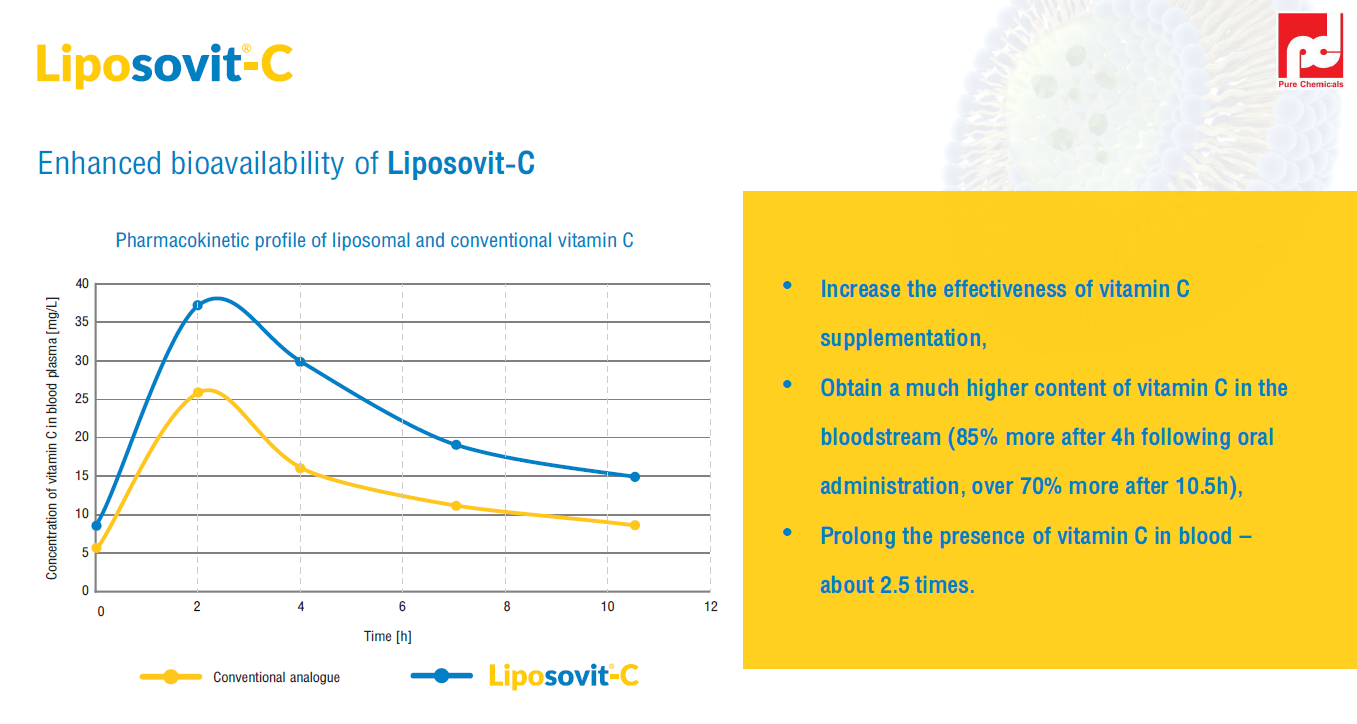 พบว่า Liposomal Vitamin C สามารถเพิ่มระดับวิตามินซีในพลาสมาได้มากกว่าวิตามินซีธรรมดาถึง 2 เท่า ภายในเวลาอันสั้น
