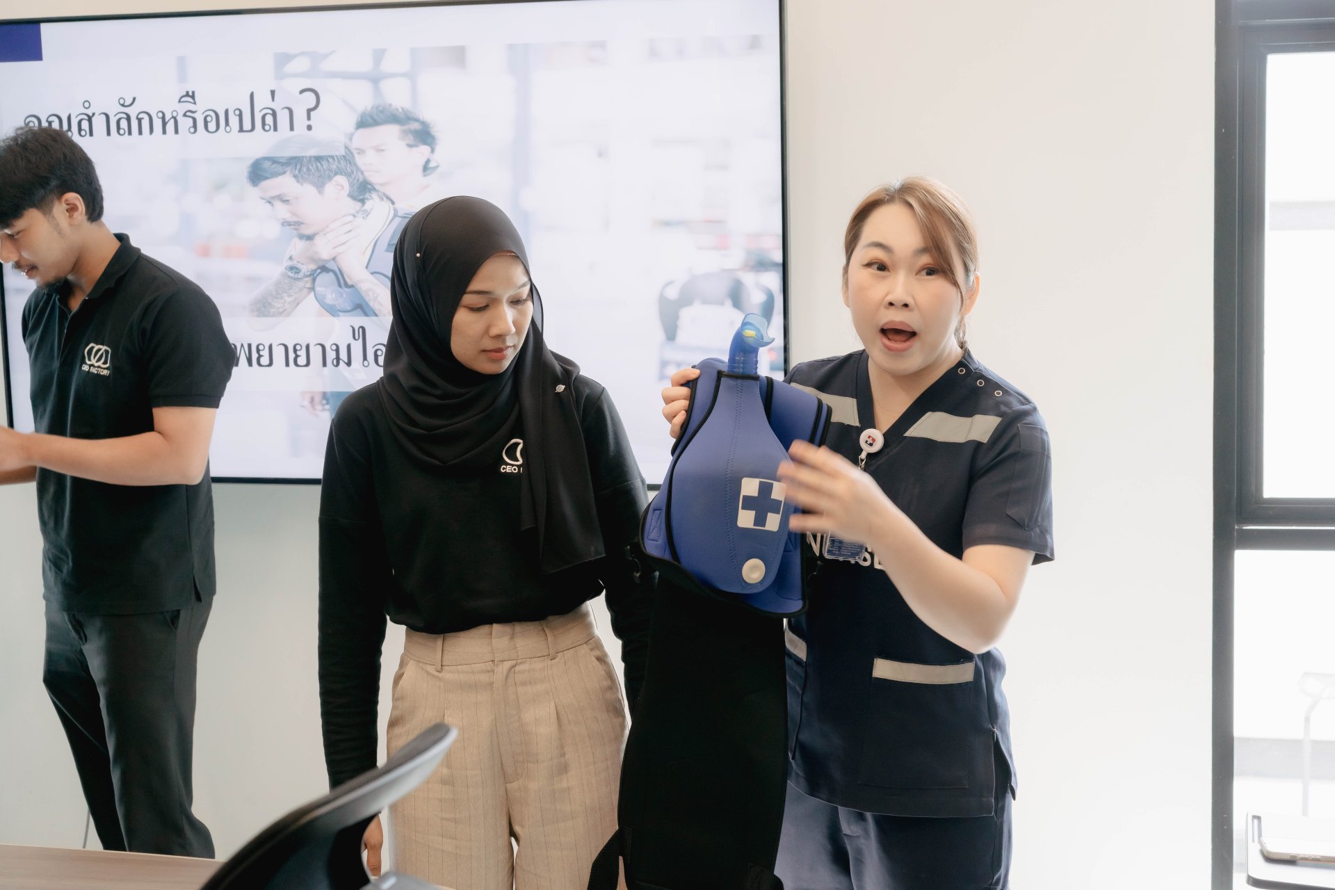 -นอกจากนี้ยังมีการสาธิตและให้พนักงานได้ฝึกปฏิบัติจริง เพื่อให้สามารถนำไปใช้ได้อย่างมั่นใจในสถานการณ์จริง โดยมีบรรยากาศการเรียนรู้ที่เต็มไปด้วยความตั้งใจและสนุกสนาน