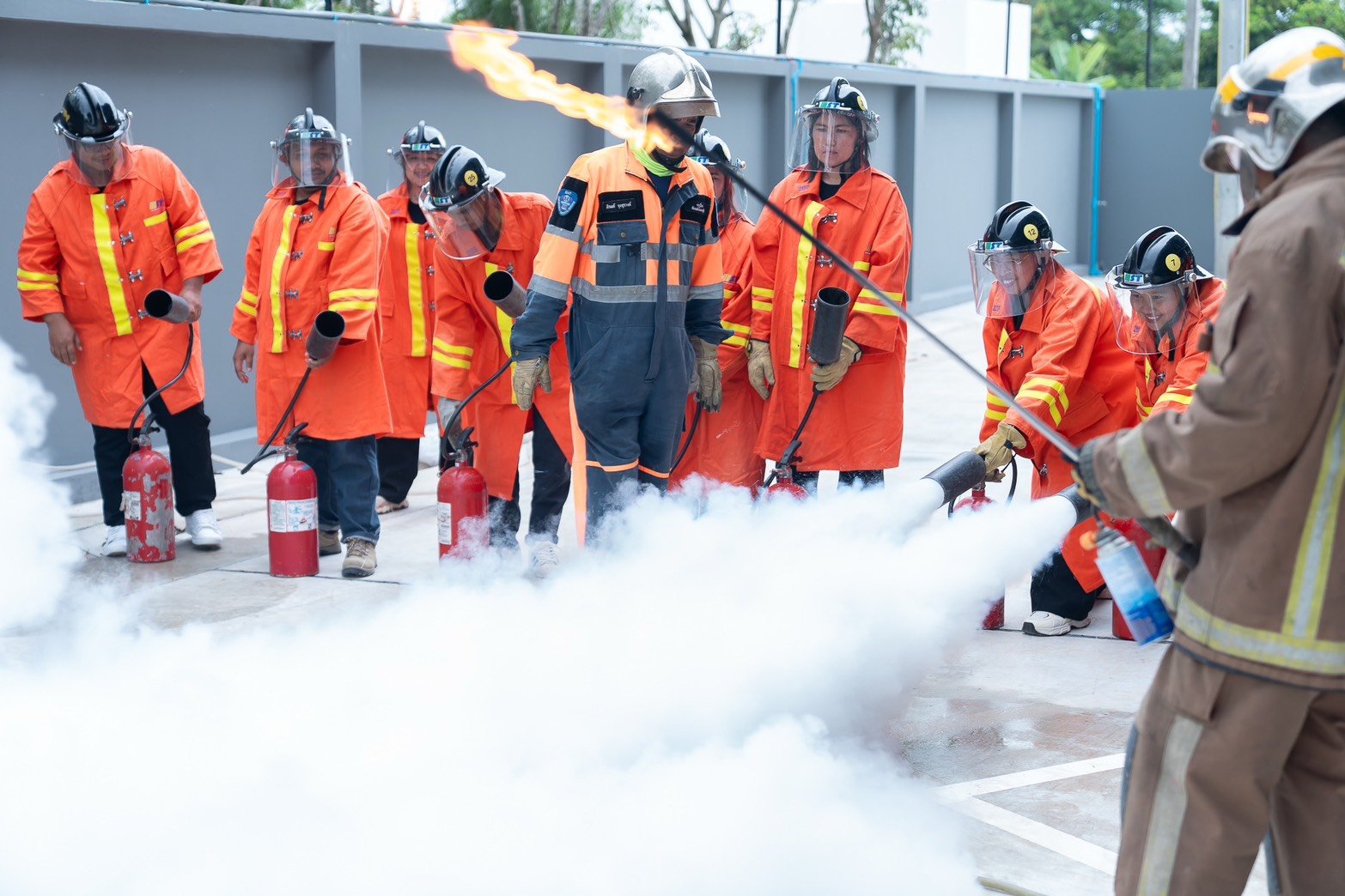 การอบรมดับเพลิงขั้นต้นเริ่มจากการให้ความรู้พื้นฐานเกี่ยวกับประเภทของไฟ และชนิดของถังดับเพลิงที่เหมาะสม เช่น