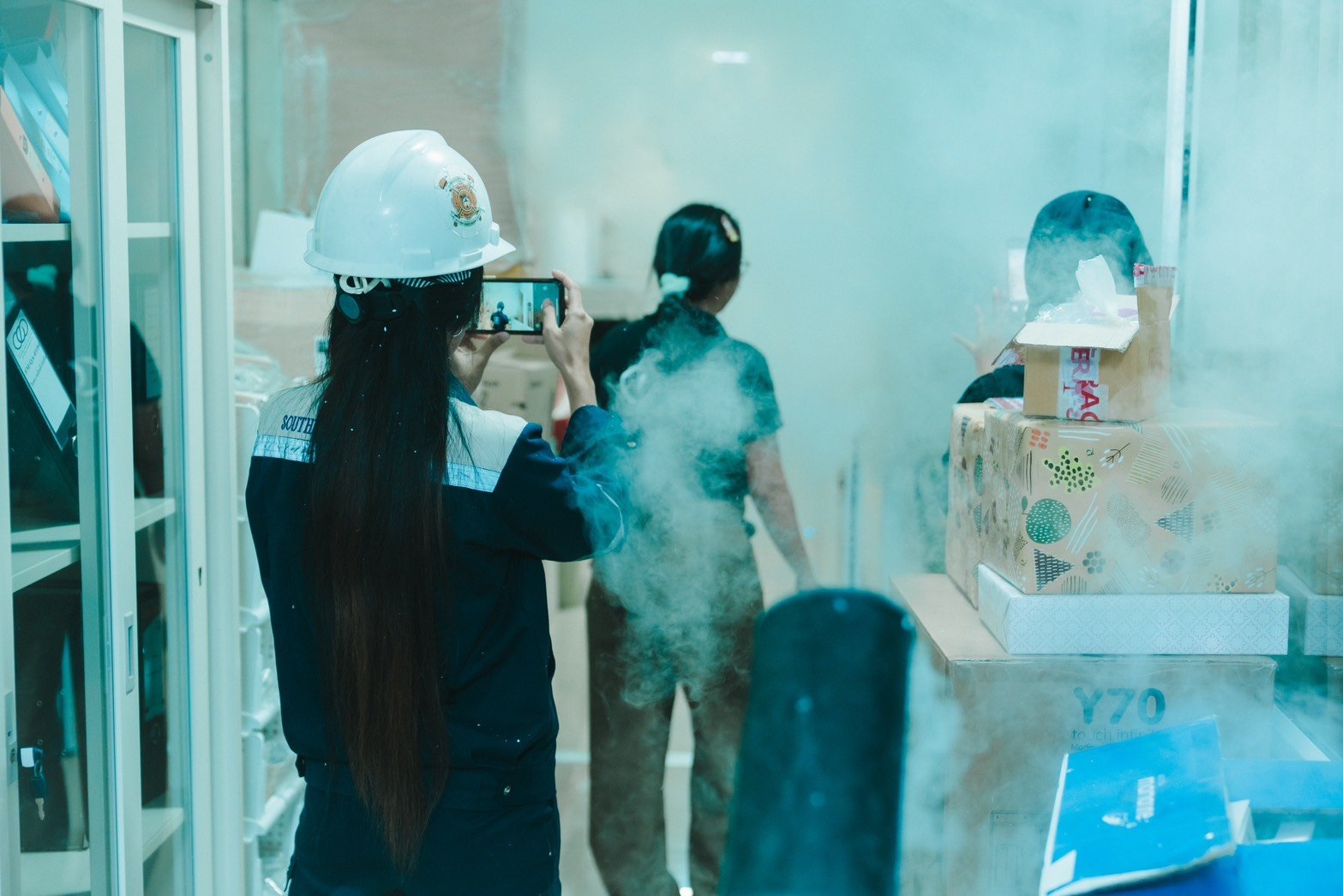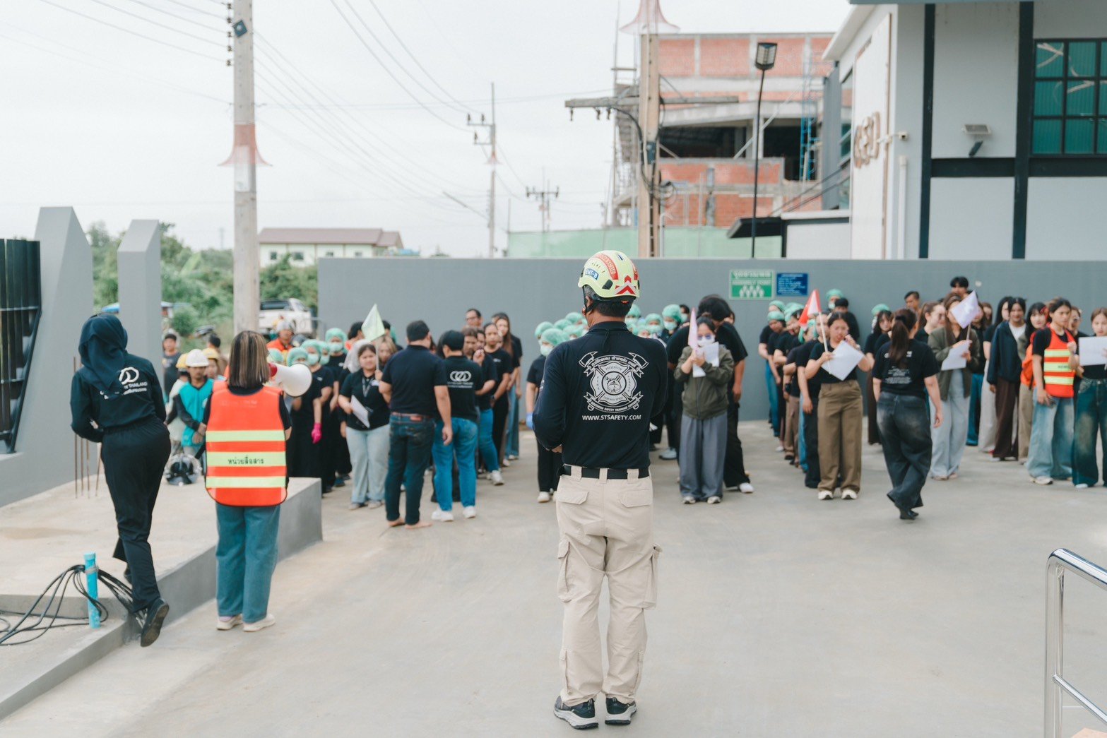 หลังจากการอบรม จะมีการจำลองสถานการณ์จริง โดยจุดควันไฟจำลองและให้พนักงานอพยพออกจากพื้นที่ตามเส้นทางที่กำหนด พร้อมเจ้าหน้าที่ควบคุมดูแลความปลอดภัยตลอดการซ้อม มีการตรวจนับจำนวนคนที่จุดรวมพล และสรุปผลการฝึกซ้อม