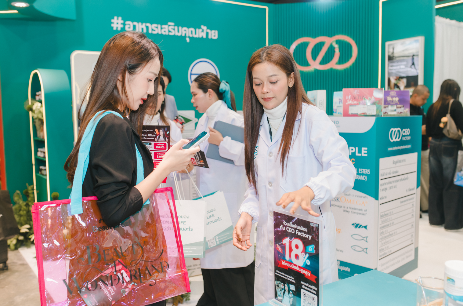 ภายในบูธ ผู้ร่วมงานสามารถพูดคุยกับทีมงาน ทดลองผลิตภัณฑ์ และเข้าร่วมกิจกรรมพิเศษที่จัดเตรียมไว้