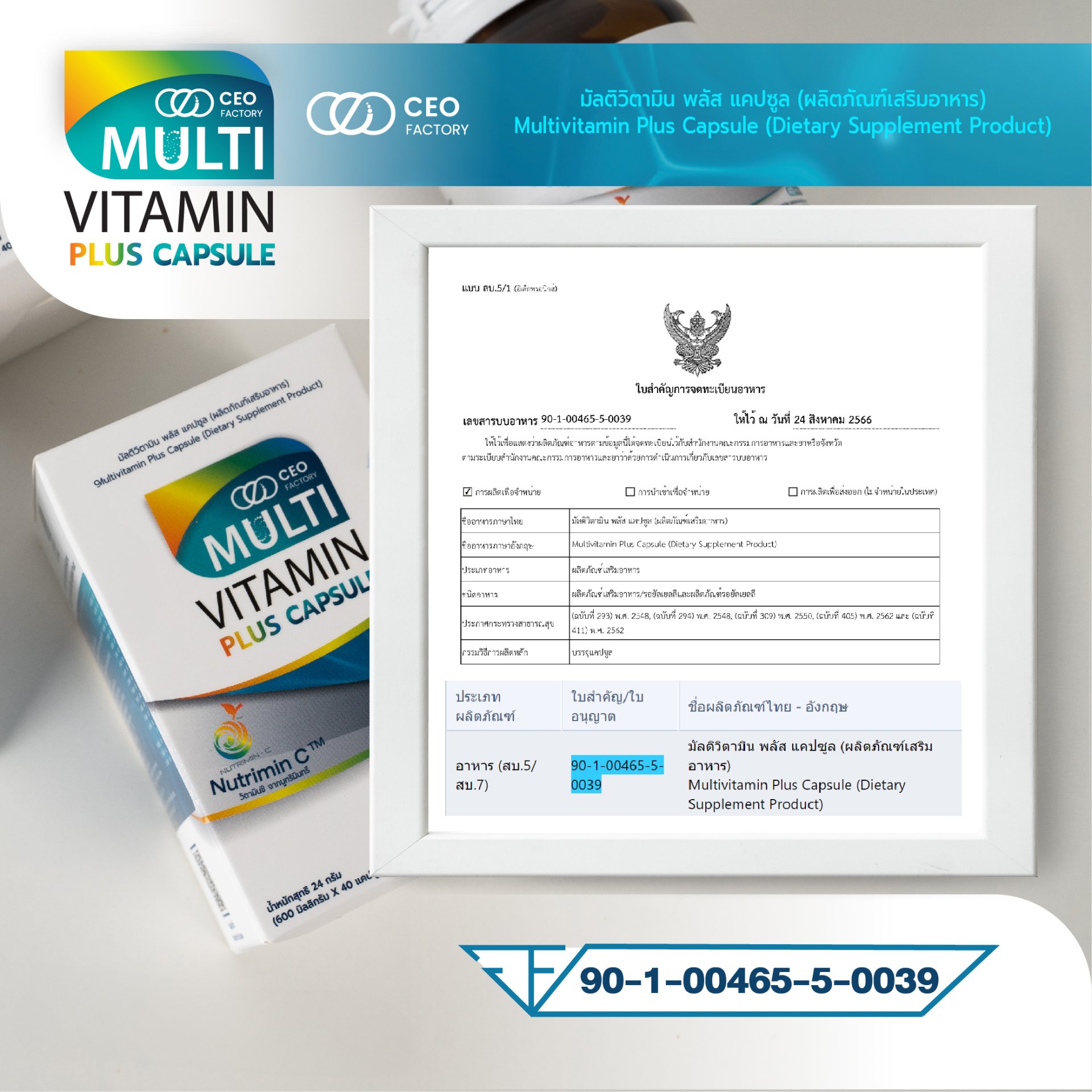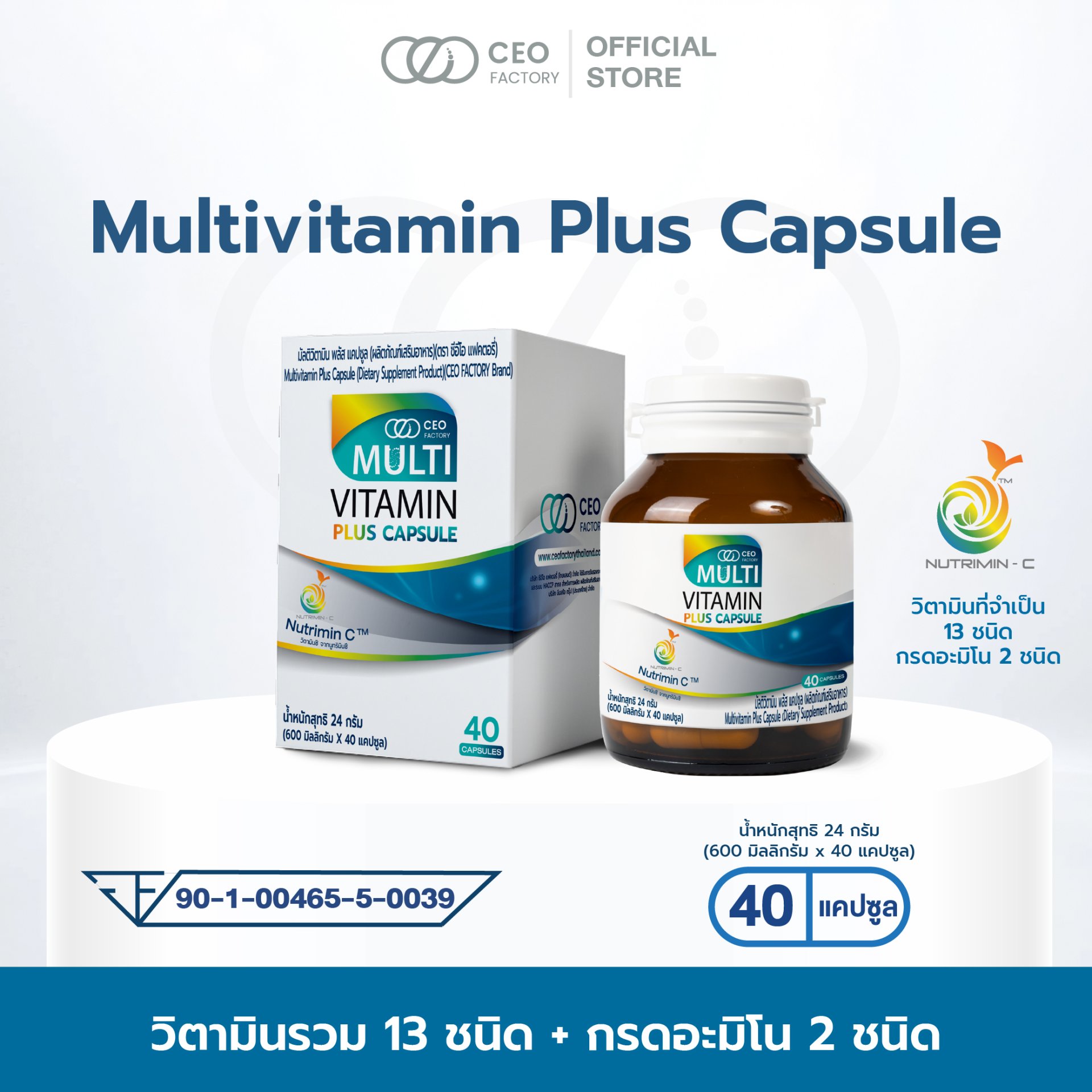 Multivitamin Plus มัลติวิตามิน พลัส ชนิดแคปซูล 40 แคปซูล วิตามิน 13 ชนิด + กรดอะมิโน 2 ชนิด เลข อย. จดแจ้ง 90-1-00465-5-0039
