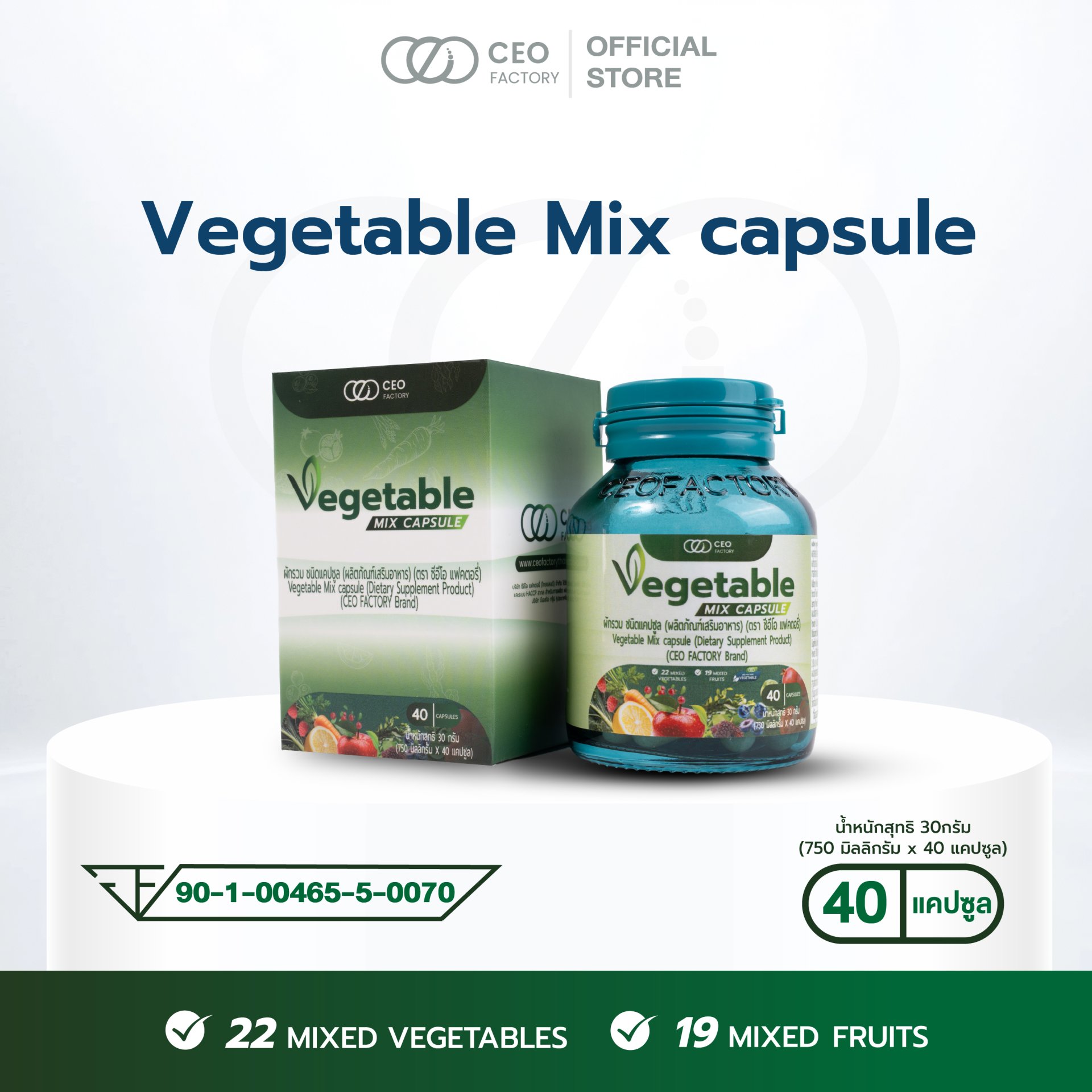 Vegetable Mix Capsule ผงผัก มิกซ์ แคปซูล (CEO Factory Brand) รวมผัก 22 ชนิด และผลไม้ 19 ชนิด