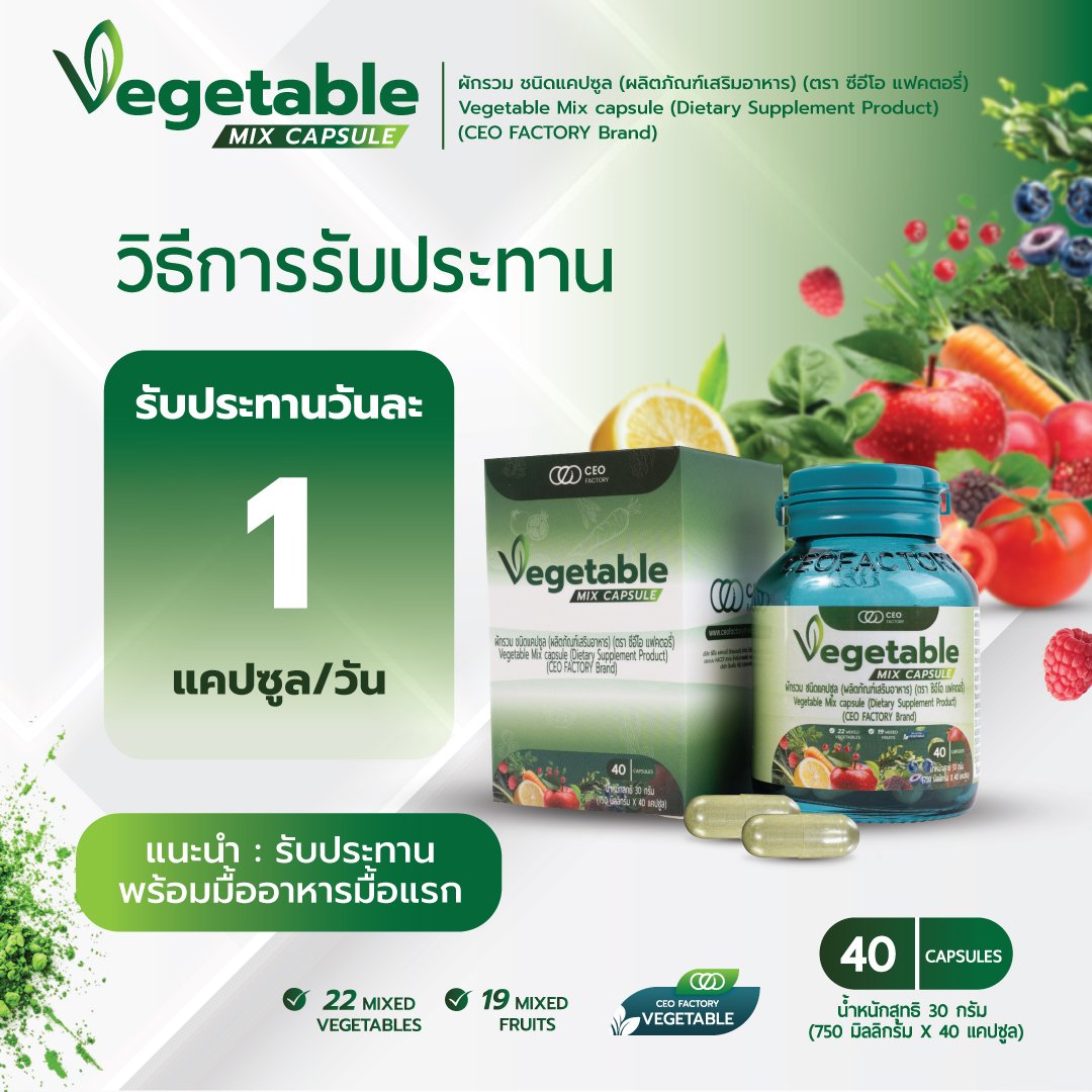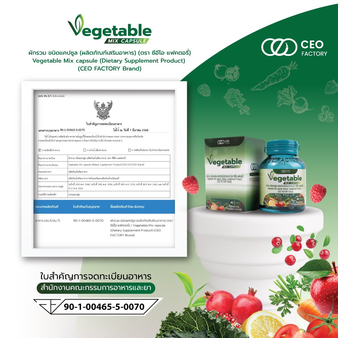 Vegetable Mix Capsule ผักรวม ชนิดแคปซูล (ผลิตภัณฑ์เสริมอาหาร) (ตรา ซีอีโอ แฟคตอรี่) เลข อย. 90-1-00465-5-0070