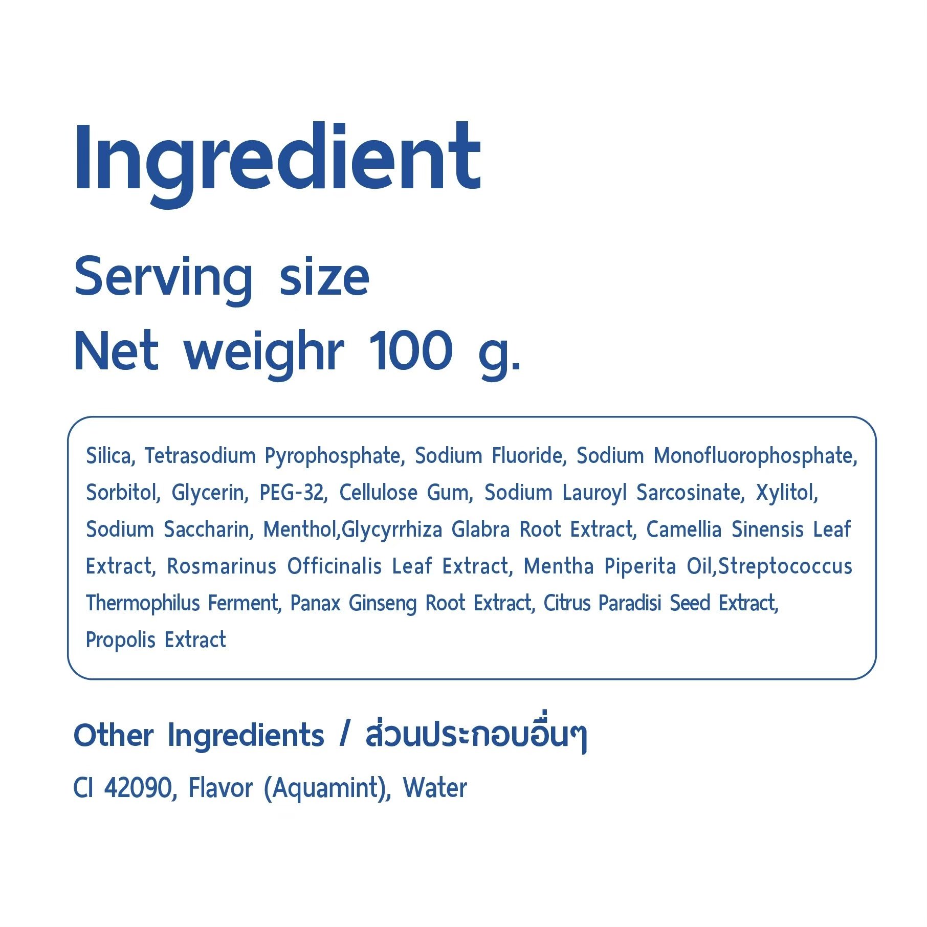 - มีส่วนผสมของโซเดียมฟลูออไรด์ (Sodium Fluoride)